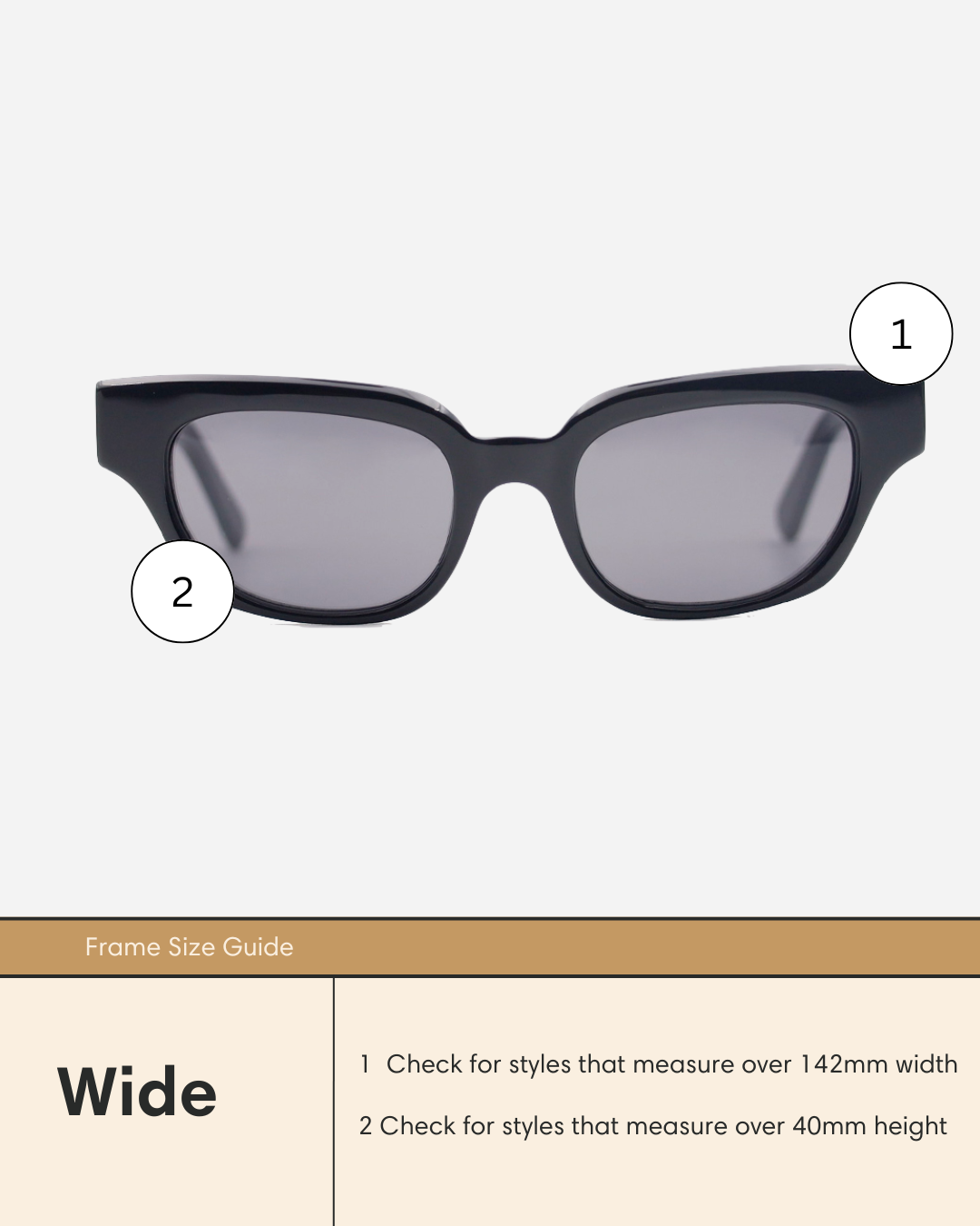 To know if wide frames suit you, try them on and ensure that they don't touch your cheeks when you smile and that the frames don't extend too far beyond the sides of your face.